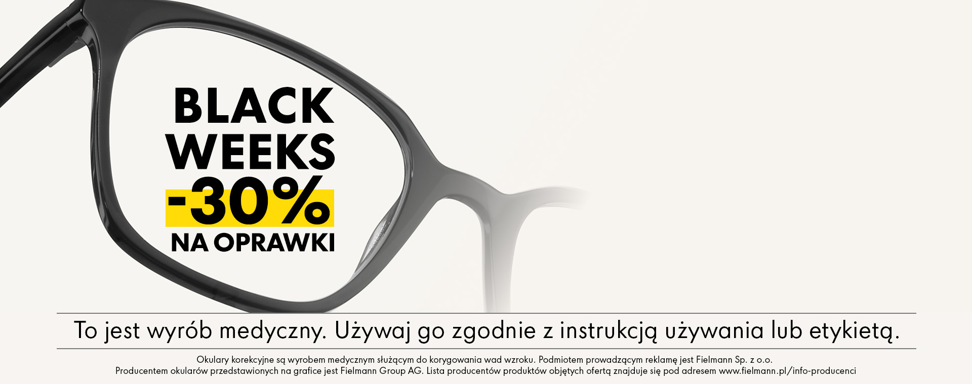 Umów wizytę w salonieSkorzystaj z promocji na Black Weeks! Kup okulary korekcyjne w dniach od 21.11 do 1.12.2025 r. i zyskaj aż 30% rabatu na oprawki.